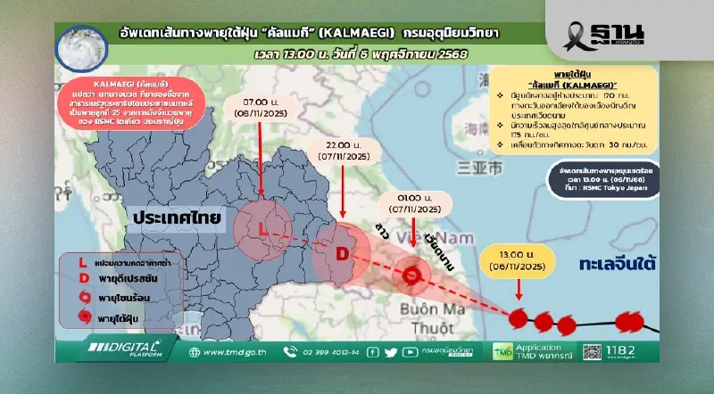 พบว่า ในช่วงวันที่ 7 – 10 พฤศจิกายน 2568 มีแนวโน้มเกิดฝนตกหนักบางแห่งบริเวณภาคเหนือและภาคใต้ อาจทำให้เกิดน้ำท่วมฉับพลัน น้ำป่าไหลหลาก และดินโคลนถล่มนั้น