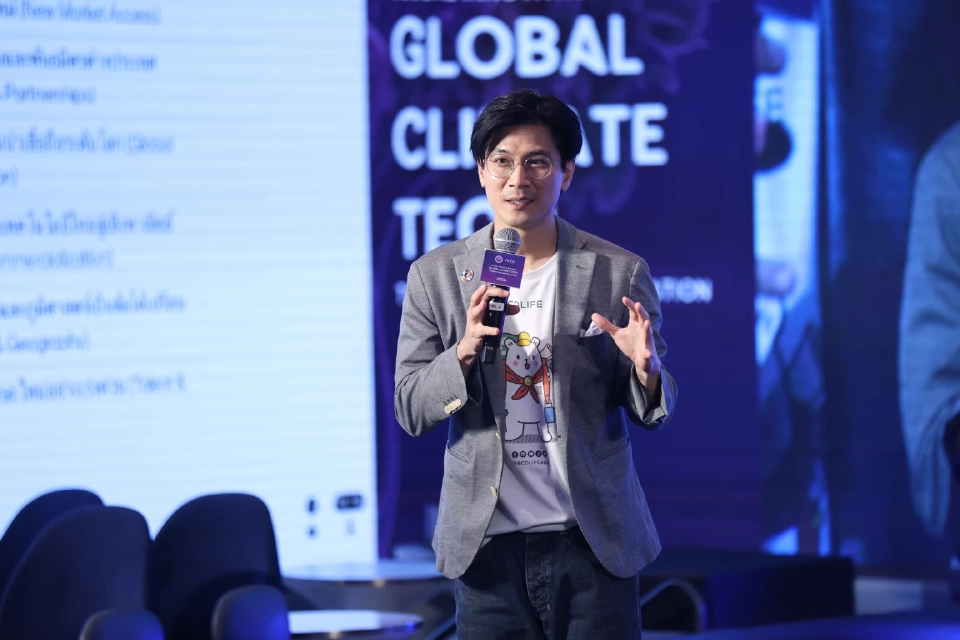 ถัดมาในหัวข้อ “Global Opportunity & Challenge for Climate Tech Innovative Business” ซึ่งจะพูดคุยถึงโอกาสและความท้าทายของธุรกิจนวัตกรรมด้านไคลเมทเทคในระดับโลก โดยมีคุณพิพัฒน์ อภิรักษ์ธนากร ผู้เชี่ยวชาญด้านความยั่งยืน และผู้ก่อตั้งแพลตฟอร์ม ECOLIFE คุณประพันธ์ศักดิ์ รักษ์ไชยวรรณ ประธานคณะอนุกรรมการกำกับดูแลกิจการด้านความรับผิดชอบต่อสิ่งแวดล้อมและสังคม บริษัท แอล.พี.เอ็น.ดีเวลลอปเมนท์ จำกัด (มหาชน) และ คุณพงษ์ศักดิ์ เหลืองจินดารัตน์ Chief Strategy and Sustainability Officer Bangkok Industrial Gas (BIG) มาแลกเปลี่ยนความเห็นถึงโอกาสและความท้าทายที่รออยู่ในการก้าวไปสู่การแข่งขันด้านไคลเมทเทคในระดับสากล