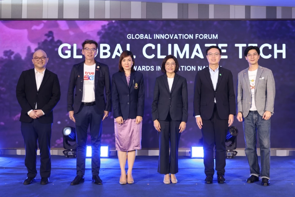 ส่วนบทบาทของภาคเอกชนในการขับเคลื่อนนวัตกรรมด้านไคลเมทเทค คุณวีรศักดิ์กล่าวถึงวิสัยทัศน์การลงทุนใน 3 ด้านหลักของทรู ได้แก่ โครงสร้างพื้นฐานดิจิทัล (Digital Infrastructure) การสร้างบุคลากรและนวัตกรรมใหม่ (De-globalization) และการลดการปล่อยคาร์บอน (Decarbonization) พร้อมสะท้อนมุมมองว่า ธุรกิจไม่ควรมองเป็นภาระ แต่คือโอกาสที่จะช่วยเพิ่มขีดความสามารถทางการแข่งขัน โดยทรูและคู่ค้าทั้งหมดได้ร่วมกันตั้งเป้าหมาย Net Zero พร้อมขับเคลื่อนด้วยเทคโนโลยีสะอาด เช่น พลังงานแสงอาทิตย์ (Solar Cell) และปัญญาประดิษฐ์ (AI) เพื่อสนับสนุนพันธมิตรธุรกิจที่ดำเนินงานไปในทิศทางเดียวกัน