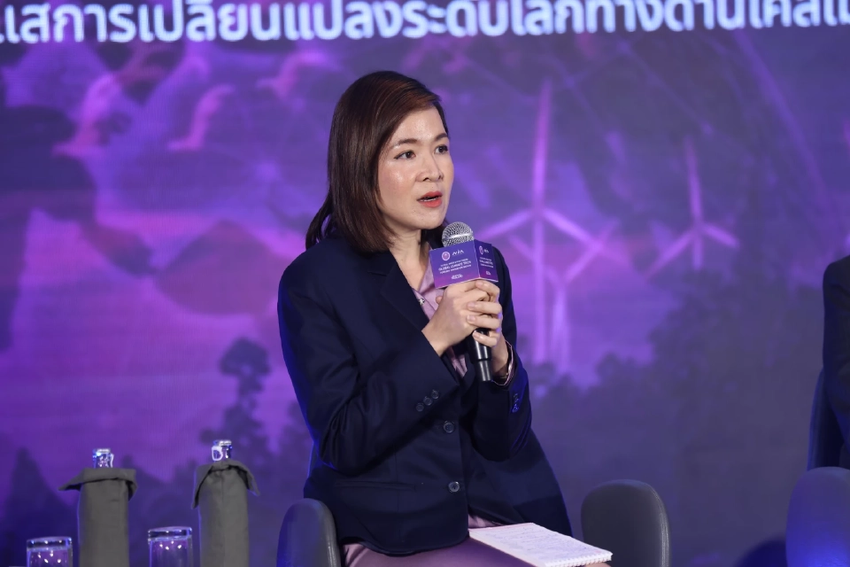 สำหรับภาคธุรกิจไทย คุณภคมนระบุว่า ความท้าทายและโอกาสจะอยู่ที่การปรับตัวตามมาตรการสากล เช่น การรายงาน Carbon Footprint ของสินค้า โดยเฉพาะตลาดยุโรปที่เริ่มใช้มาตรการเข้มงวด นอกจากช่วยให้ผู้ประกอบการรับรู้ และลดแหล่งปล่อยก๊าซได้อย่างมีประสิทธิภาพแล้ว ยังช่วยลดต้นทุนในระยะยาว ปัจจุบันมีองค์กรไทยมากกว่า 1,700 แห่งที่รายงานการปล่อยก๊าซเรือนกระจก และกว่า 100 องค์กรประกาศเป้าหมาย Net Zero สะท้อนถึงการเติบโตอย่างก้าวกระโดดและการนำเทคโนโลยีสีเขียว (Green Tech) มาเสริมขีดความสามารถในการแข่งขันบนเวทีโลก