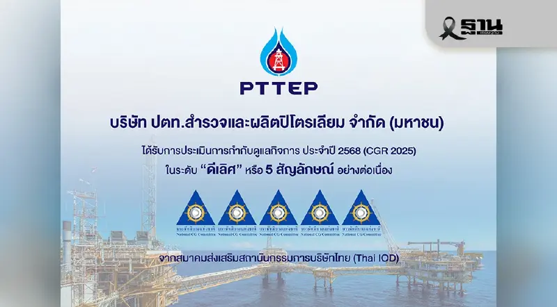 ปตท.สผ. ได้รับการประเมินกำกับดูแลกิจการระดับดีเลิศ 5 สัญลักษณ์ จาก Thai IOD ต่อเนื่องปีที่ 24 ติด Top Quartile บริษัทมาร์เก็ตแคปเกิน 1 แสนล้านบาทพร้อมคว้า 3 รางวัลใหญ่ด้านนักลงทุนสัมพันธ์จากเวที IR Impact Awards สะท้อนมาตรฐานองค์กรโปร่งใสระดับสากล