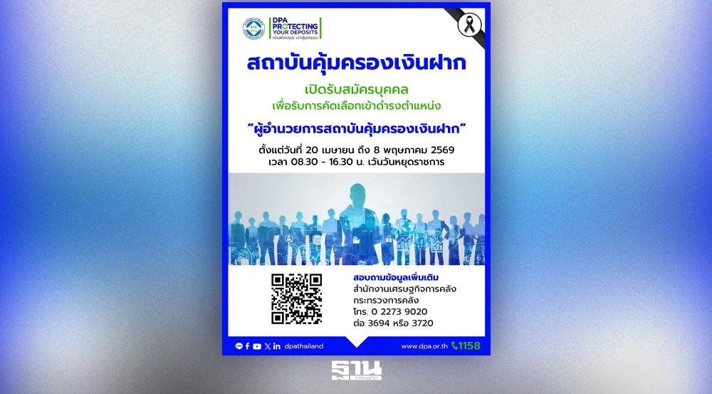 สถาบันคุ้มครองเงินฝากเปิดรับผู้สมัครผู้อำนวยการ เริ่ม 20 เม.ย.–8 พ.ค.นี้ เดินหน้าคัดเลือกผู้นำองค์กร เสริมเสถียรภาพระบบการเงินไทย