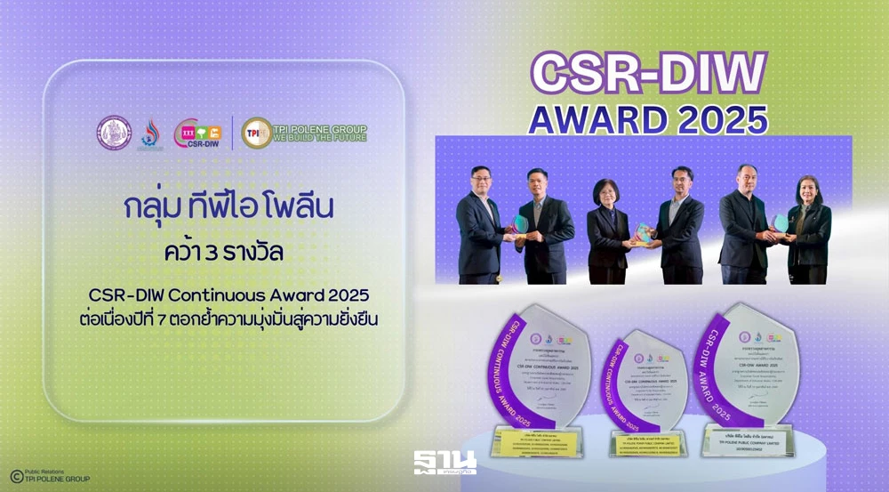 กลุ่มบริษัท ทีพีไอ โพลีน สร้างความภาคภูมิใจอีกครั้ง ด้วยการคว้ารางวัล CSR-DIW Continuous Award 2025 จากกรมส่งเสริมอุตสาหกรรม กระทรวงอุตสาหกรรม ต่อเนื่องเป็นปีที่ 7 ติดต่อกัน สะท้อนความมุ่งมั่นในการดำเนินธุรกิจอย่างมีความรับผิดชอบต่อสังคมและสิ่งแวดล้อมอย่างยั่งยืน