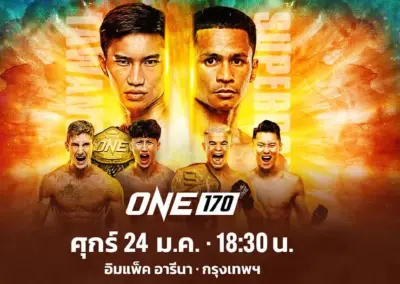 เกาะติดตารางการแข่งขันและโปรแกรมการถ่ายทอดสด ความมันส์ระดับประวัติศาสตร์ใน "ศึกมวย ONE 170" วันนี้ ศุกร์ที่ 24 มกราคม 2568 ณ อิมแพ็ค อารีนา เมืองทองธานี