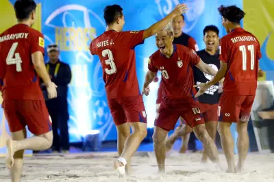 ผลการแข่งขันฟุตบอลชายหาดชิงแชมป์เอเชีย 2025 ล่าสุด วันที่ 24 มีนาคม 2568 ทีมฟุตบอลชายหาดทีมชาติไทย โชว์ฟอร์มสุดดราม่า เฉือนเอาชนะทีมชาติคูเวต 4-3 ในช่วงต่อเวลาพิเศษ คว้าแชมป์กลุ่มเอ พร้อมผ่านเข้าสู่รอบ 8 ทีมสุดท้ายในศึก AFC Beach Soccer Asian Cup Thailand 2025 ได้อย่างยิ่งใหญ่ ณ สนามจอมเทียน บีช อารีน่า เมืองพัทยา