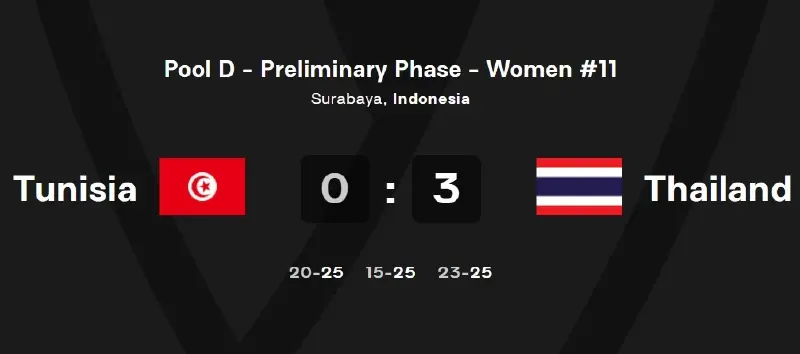 แม้ในเซตที่สามตูนิเซียจะพยายามไล่เบียดจนแต้มสูสี แต่สาวไทยยังคงรักษาความนิ่งและความแม่นยำในจังหวะสุดท้าย ปิดเกมคว้าชัยได้อย่างสมบูรณ์แบบ โดยรวมแล้วทีมไทยทำแต้มจากการบุกได้ถึง 41 คะแนน แสดงให้เห็นถึงประสิทธิภาพเกมรุกที่จัดจ้านตั้งแต่เกมแรกของทัวร์นาเมนต์