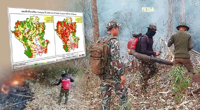โดยรายงานดังกล่าวระบุข้อมูลที่น่าสนใจว่า จะเห็นได้ว่าในห้วงสัปดาห์ที่ผ่านมาจุดความร้อนเพิ่มมากขึ้น เป็น 11,553 จุด มากกว่าปีที่ 2566 10 เท่า ซึ่งแสดงให้เห็นสถานการณ์การผาป่าหรือการดับไฟป่า การควบคุม สกัด การลักลอบเข้าไปเผาป่า