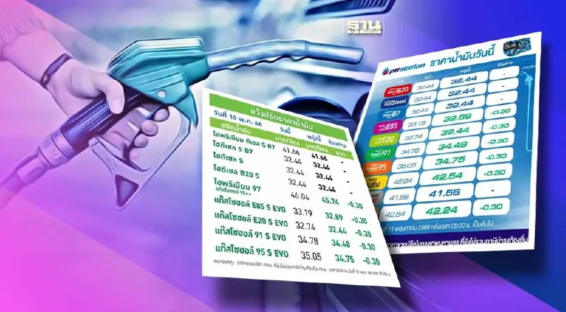 - แก๊สโซฮอล์ E85 ลิตรละ 32.89 บาท