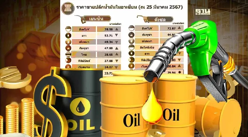 นายวีรพัฒน์ เกียรติเฟื่องฟู ผู้อำนวยการสำนักงานนโยบายและแผนพลังงาน (สนพ.) เปิดเผยราคาขายปลีกน้ำมันเบนซินและดีเซลของประเทศไทยและต่างประเทศวันที่ 25 มีนาคม 2567 พบว่า ราคาขายปลีกน้ำมันเบนซิน ประเทศสิงคโปร์มีระดับสูงสุดในกลุ่มอาเซียน อยู่ที่ระดับ 78 บาทต่อลิตร ขณะที่ประเทศไทยอยู่ในอันดับ 5 ของกลุ่มอาเซียน อยู่ที่ระดับ 38.65 บาทต่อลิตร
