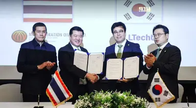 นายอชิรธร อิชย์ถาวร กรรมการผู้จัดการบริษัท มา คอเพอร์เรชั่น ออย จำกัด และผู้บริหารจาก LTECHUVC INC.นำโดย Mr. Seho KIM, Chairman/CEO of LTECHUVC INC. (ผู้มอบสิทธิ์ฯ ลงทุน/จำหน่าย)และ Mr. Jungdong AHN, Excultive Director of LTECHUVC INC. ภาคเอกชนจากประเทศเกาหลีใต้ ร่วมลงนามในสัญญาเป็นพันธมิตรทางธุรกิจเพื่อการผลิตและจำหน่ายพลังงานไฟฟ้าจากน้ำ หรือ GREEN AMMONIA ENERGY โดยมีนายกร ทัพพะรังสี อดีตรองนายกรัฐมนตรี เป็นประธานและร่วมเป็นสักขีพยานในการแถลงข่าวด้วย