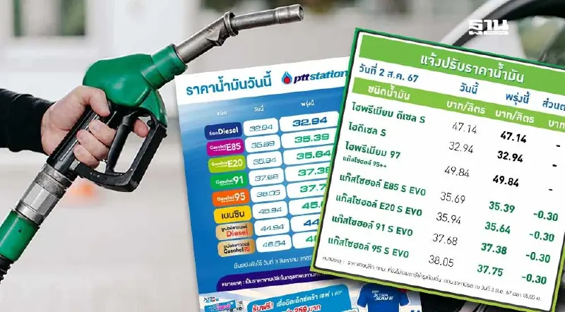 ราคาน้ำมันพรุ่งนี้2567 (3 ส.ค.) ปตท. บางจากลด 30 สตางค์ อัปเดตราคาล่าสุด