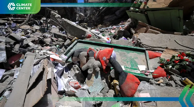 เศษซากหลายล้านตันที่เหลือจากการทิ้งระเบิดในกาซาโดยอิสราเอล อาจก่อให้เกิดการปล่อยก๊าซเรือนกระจกมากกว่า 90,000 ตัน และอาจใช้เวลานานถึง 4 ทศวรรษในการขนย้ายและจัดการ ตามผลการศึกษาฉบับหนึ่ง