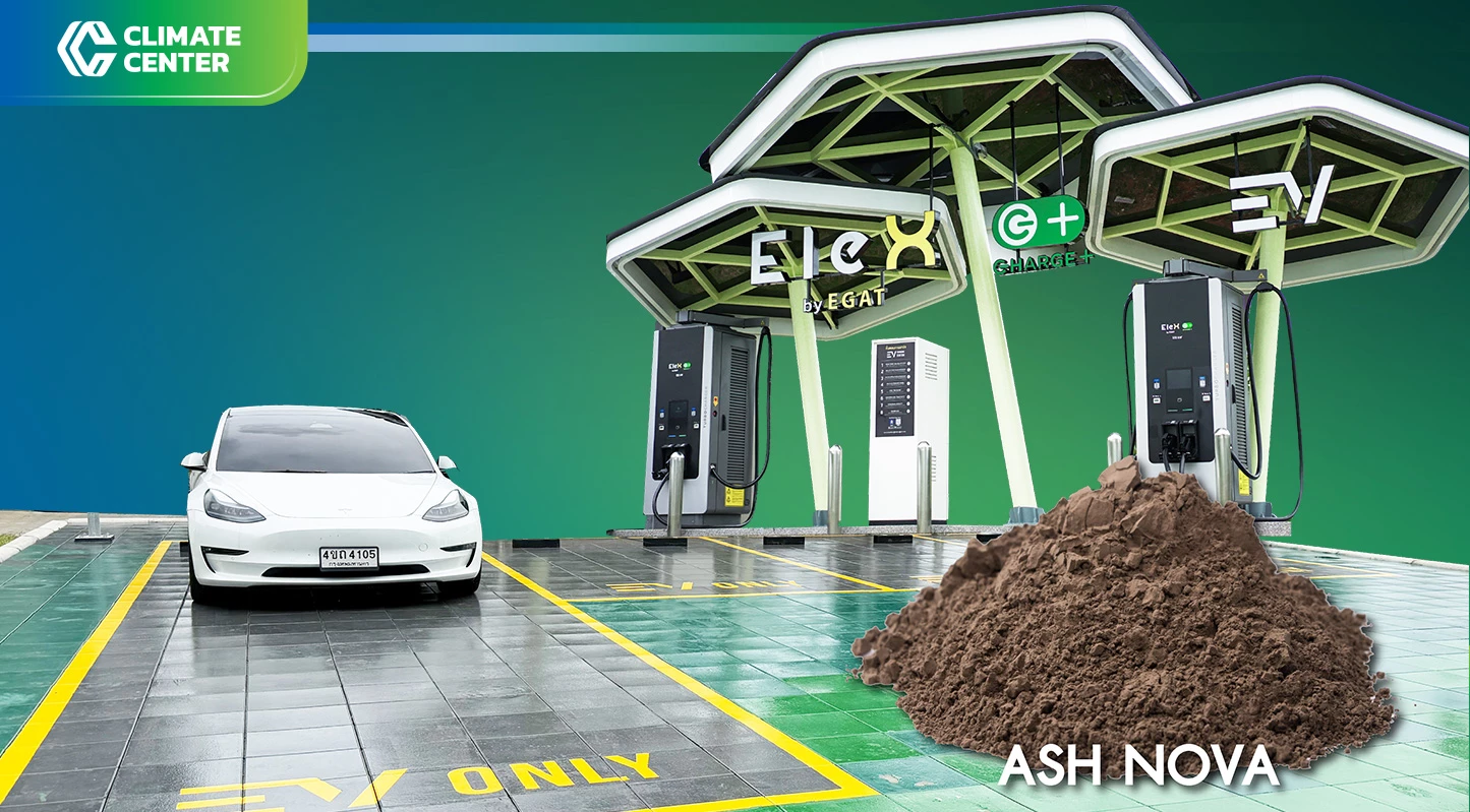 นอกจากนี้ หัวใจสำคัญที่ทำให้สถานีแห่งนี้เป็น Green Charging Station เป็นการเลือกใช้ วัสดุที่เป็นมิตรต่อสิ่งแวดล้อม โดยการนำคอนกรีตทางเลือก EGAT AshNova มาเป็นวัสดุในการก่อสร้างบริเวณพื้น ซึ่งเป็นนวัตกรรมวัสดุที่พัฒนามาจาก “เถ้าลอย” (Fly Ash) ซึ่งเป็นผลพลอยได้จากกระบวนการผลิตไฟฟ้าของโรงไฟฟ้าแม่เมาะ จ.ลำปาง จากใช้ถ่านหินลิกไนต์เป็นเชื้อเพลิงปีละกว่า 12.7 ล้านตัน และก่อให้เกิดเถ้าลอยราว 1.7 ล้านตันต่อปี