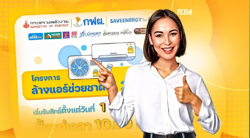 ล้างแอร์ช่วยชาติเป็นกฟผ. ร่วมกับห้างสรรพสินค้าและผู้ค้าปลีกบริการล้างแอร์มอบส่วนลดค่าบริการล้างแอร์ครึ่งราคา