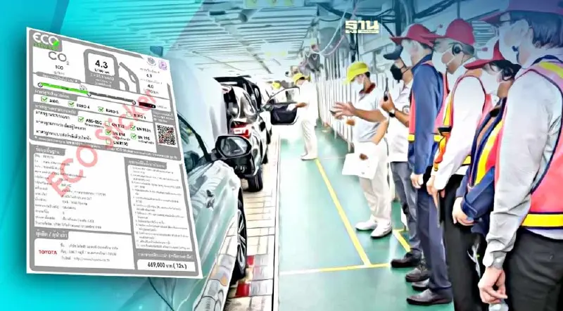 และส่งต่อไปยังแผนกจัดส่งรถยนต์ใหม่ ซึ่งจะมีการติดป้ายข้อมูลรถยนต์ตามมาตรฐานสากล (ECO Sticker) เพื่อยืนยันคุณลักษณะและคุณสมบัติของรถยนต์ที่ผลิตออกจากโรงงานให้กับผู้บริโภคได้รับทราบ ก่อนที่จะนำรถยนต์เก็บไว้ในสต๊อก เพื่อรอการส่งไปยังผู้แทนจำหน่ายต่อไป