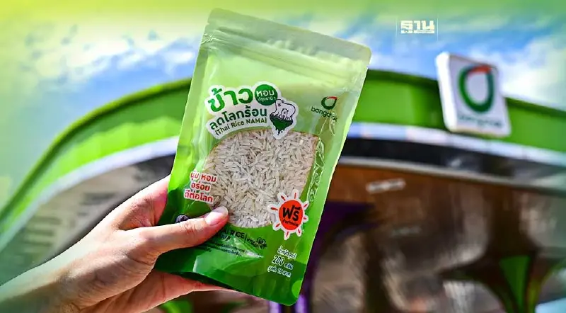 นายสมชัย เตชะวณิช ประธานเจ้าหน้าที่การตลาด กลุ่มธุรกิจการตลาด บริษัท บางจาก คอร์ปอเรชั่น จำกัด (มหาชน) เปิดเผยว่า บางจากได้ดำเนินการนำ "ข้าวลดโลกร้อน” จำนวน 40 ตัน ที่บางจากรับซื้อจากวิสาหกิจชุมชนแปลงใหญ่เกษตรสมัยใหม่ตำบลเดิมบาง จังหวัดสุพรรณบุรี ผ่านบริษัท ออมสุขวิสาหกิจเพื่อสังคม จำกัดมาส่งต่อให้กับลูกค้าสถานีบริการบางจากที่ร่วมรายการ ในกรุงเทพฯ และปริมณฑล