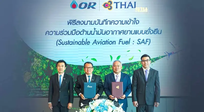 นายสุชาติ ระมาศ ผู้อำนวยการใหญ่ บริษัท ปตท.น้ำมันและการค้าปลีก จำกัด (มหาชน) หรือโออาร์ (OR) เปิดเผยว่า โออาร์ได้ดำเนินการร่วมกับบริษัท การบินไทย จำกัด (มหาชน) ในการนำน้ำมันเชื้อเพลิงอากาศยานแบบยั่งยืน (Sustainable Aviation Fuel : SAF) ไปใช้ในอุตสาหกรรมการบินสำหรับเที่ยวบินนำร่องของการบินไทย