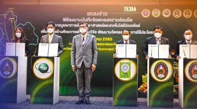 รศ.ดร.ธวัชชัย อ่อนจันทร์ ผู้อำนวยการ สทน. กล่าวว่า การยกระดับผลิตภัณฑ์อาหารพื้นถิ่น เพื่อให้ผู้บริโภคมีความมั่นใจในคุณภาพและมาตรฐาน ด้วย “เทคโนโลยีและนวัตกรรม” เป็นสิ่งที่รัฐบาลให้ความสำคัญ พิธีลงนามบันทึกข้อตกลงฯในวันนี้ จึงเกิดขึ้นเพื่อให้การฉายรังสีในอาหารเป็นที่ยอมรับและมีการใช้ประโยชน์แพร่หลายมากขึ้น โดยในปี 2564 - ก.ค. 2565 ที่ผ่านมา สทน. ได้ร่วมกับ 3 มหาวิทยาลัยราชภัฏ ในภาคกลาง และภาคใต้ ประกอบด้วย มรภ.พระนครศรีอยุธยา /มรภ.ธนบุรี/ มรภ.ราชนครินทร์ / มรภ.สุราษฎร์ธานี / มรภ.สงขลา /มรภ.ภูเก็ต ร่วมกันจัดฝึกอบรมให้ความรู้ ความเข้าใจ สร้างการยอมรับ โดยมีอาหารพื้นถิ่นที่ส่งเข้าร่วมโครงการฯ รวมทั้งสิ้น 301 ผลิตภัณฑ์