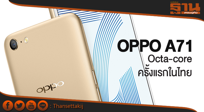 OPPO เปิดตัว OPPO A71 สมาร์ทโฟนราคาคุ้มค่า ภายใต้สโลแกน “สปีดแรง ทุกการใช้งาน” ซึ่งมาพร้อมหน่วยประมวลผล Octa-core ครั้งแรกในไทย
