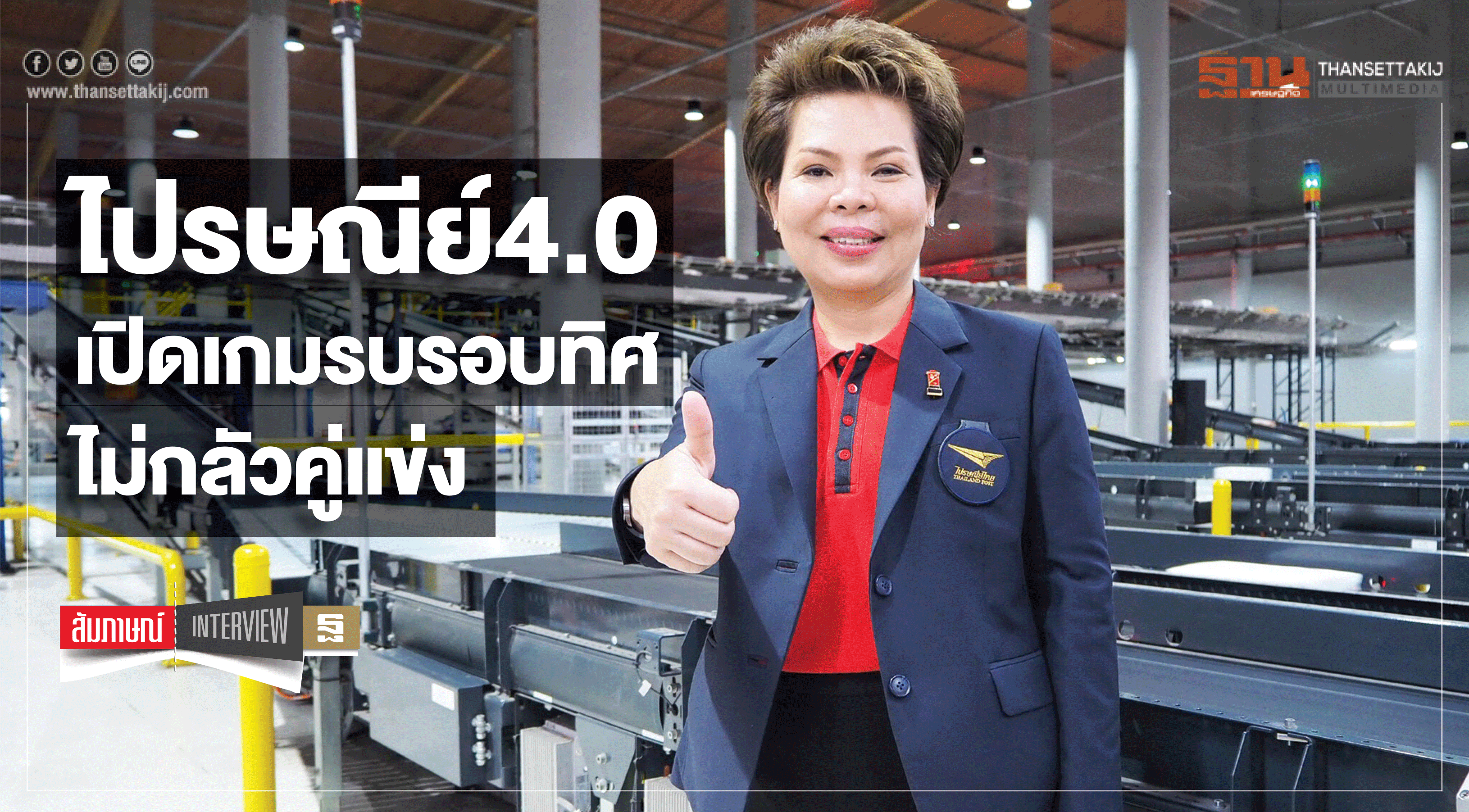 บริษัท ไปรษณีย์ไทย จำกัด (ปณท) เดินหน้าขับเคลื่อนสู่ “ไปรษณีย์ไทย 4.0” หนุนธุรกิจอี-คอมเมิร์ซ ด้วยนวัตกรรมเครื่องคัดแยกกล่องพัสดุและซองจดหมายประสิทธิภาพสูง พร้อมรับมือปริมาณงานกว่า 8 ล้านชิ้นต่อวัน ช่วยเพิ่มความเร็วและคุณภาพการส่ง ตั้งเป้าขยายติดตั้งเครื่องคัดแยกอัตโนมัติทุกศูนย์ไปรษณีย์ทั่วประเทศ