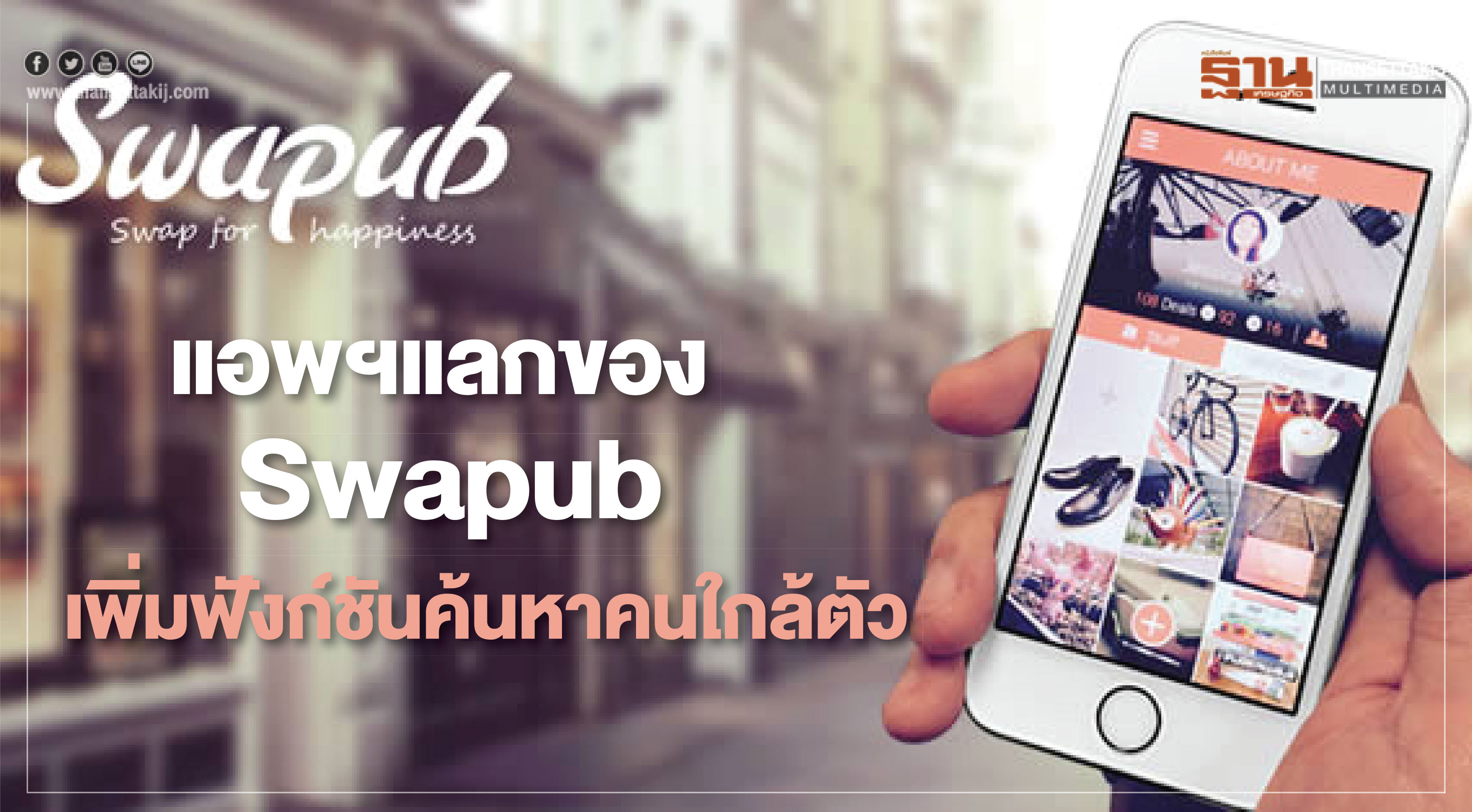 Swapub แอพพลิเคชันแลกของฉลองยอดดาวน์โหลด ครบ 3 ล้าน เปิดตัวฟังก์ชันใหม่ Nearby เชื่อมโยง GPS ให้ผู้ใช้งานเลือกแลกของกับผู้คนในพื้นที่ใกล้ตัว เผยล่าสุดมีของมากกว่า 8 ล้านชิ้น สำหรับแลกเปลี่ยนในแพลตฟอร์ม ช่วยให้ผู้ใช้งานเข้าถึงสิ่งของที่ต้องการตามฝันได้ง่ายๆโดยไม่มีค่าใช้จ่าย และช่วยลดการทิ้งสิ่งของโดยไม่จำเป็น