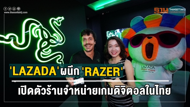 นายมาเทียส คาสเทล ผู้อำนวยการ Digital Store บริษัท Razer พร้อมด้วย นางสาวธนิดา ซุยวัฒนา ประธานเจ้าหน้าที่บริหาร ฝ่ายการตลาด บริษัท ลาซาด้า จำกัด ประกาศเปิดตัว Razer Game Store บนลาซาด้า ในประเทศไทย กลุ่มบริษัท Lazada ซึ่งเป็นผู้นำแพลตฟอร์มอีคอมเมิร์ซในภูมิภาคเอเชียตะวันออกเฉียงใต้ ได้ประกาศเปิดตัว Razer Game Store บน Lazada ในประเทศไทย เริ่มตั้งแต่วันนี้ เหล่าเกมเมอร์และนักกีฬาอีสปอร์ตทั่วเมืองไทยจะสามารถเลือกซื้อเกมดิจิตอลมากมายได้อย่างสะดวกสบาย โดยไม่ต้องเดินทางออกจากฐานที่มั่นของตัวเองแต่อย่างใด