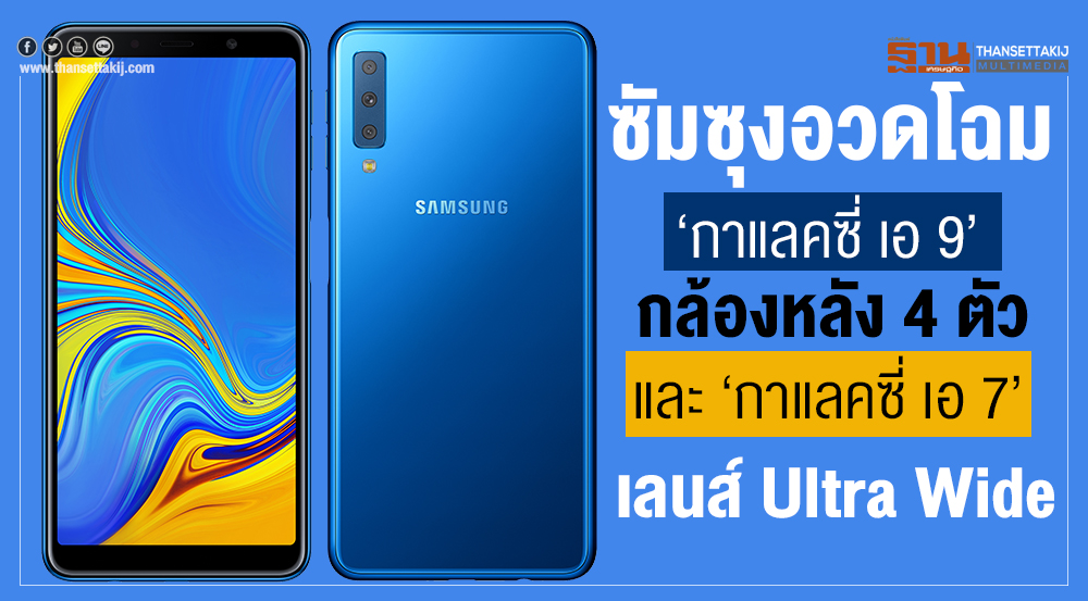 "กาแลคซี่ เอ" ที่มาพร้อมสุดยอดนวัตกรรมกล้องถ่ายภาพ ตอกย้ำความเป็นผู้นำในการพัฒนาเทคโนโลยี เพื่อส่งมอบประสบการณ์ที่แตกต่างให้กับผู้บริโภคทั่วโลก กาแลคซี่ เอ 9 (Galaxy A9) สมาร์ทโฟนกล้องหลัง 4 ตัว (rear quad camera) ครั้งแรกของโลก ที่จะช่วยให้คุณบันทึกทุกความทรงจำมีค่าแบบครบทุกมุมมอง ยิ่งกว่าที่ตาเห็น และกาแลคซี่ เอ 7 (Galaxy A7) สมาร์ทโฟนกล้องหลัง 3 ตัว รุ่นแรกของซัมซุง ที่เพิ่มเลนส์ Ultra Wide เพื่อการเก็บภาพในมุมกว้างได้ดีกว่าใคร