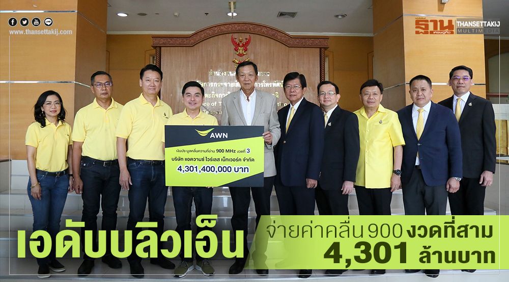 เลขาธิการ กสทช. เผย “AWN” ชำระเงินค่าประมูลคลื่นความถี่ 900 MHz งวดที่สาม จำนวน 4,301.40 ล้านบาทแล้ว
