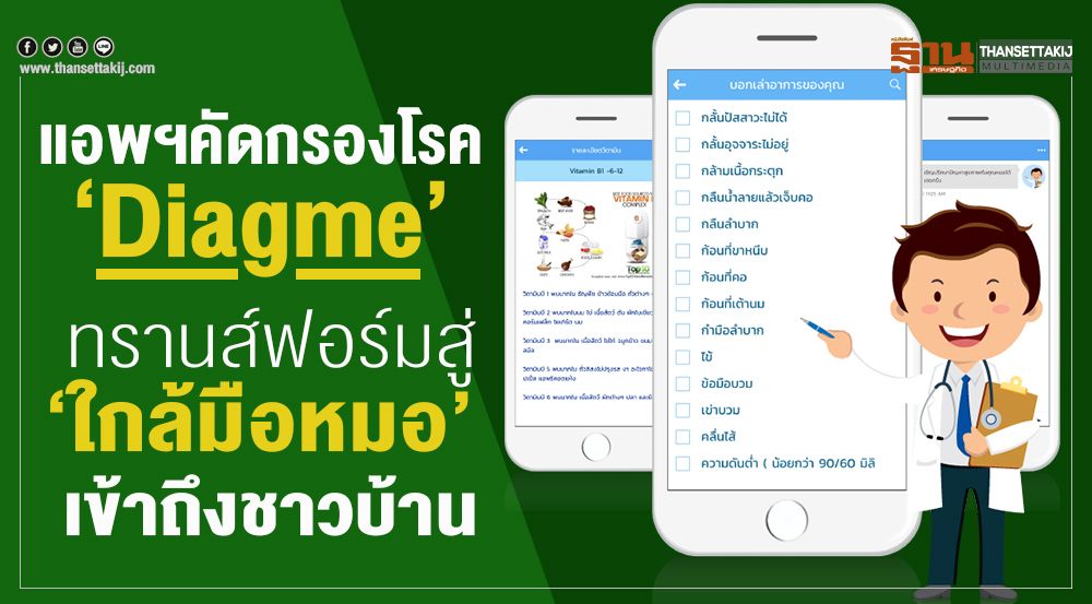 จากความตั้งใจที่จะช่วยเหลือคนไทยให้มีโอกาสเข้าถึงการรักษาโรคได้ง่ายขึ้น ทำให้ นพ.อดุลย์ชัย ธรรมาแสงเสริฐ กรรมการสมาคมศัลยแพทย์ตกแต่งเสริมสวยแห่งประเทศไทย ได้ร่วมมือกับแพทย์เฉพาะทางศิริราช ก่อตั้งแฟนเพจเฟซบุ๊ก ภายใต้ชื่อ “แพทย์เฉพาะทางบาทเดียว” เพื่อให้คำปรึกษาปัญหาด้านสุขภาพและการตรวจคัดกรองโรคเบื้องต้น ซึ่งได้มีการเก็บรวบรวมข้อมูลของการให้บริการดังกล่าว นำไปสู่การพัฒนาเป็นแอพพลิเคชัน “Diagme” แอพตรวจคัดกรองและประเมินความเสี่ยงของการเกิดโรค จากอาการผิดปกติของคนไข้ด้วยการสร้างอัลกอริทึมรูปแบบคำถามที่แพทย์นิยมใช้ในการวินิจฉัยโรคเบื้องต้นให้กับผู้ป่วย