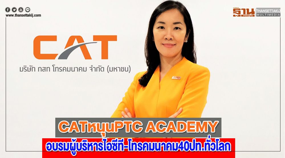 CAT สนับสนุนการอบรมโทรคมนาคมระดับโลก PTC ACADEMY Bangkok: Executive insight for Exceptional Leaders “ไฮไลต์” ดึงผู้บริหารจากกลุ่มธุรกิจโทรคมนาคมชั้นนำ ร่วมแชร์ความรู้และประสบการณ์ พร้อมทำ Workshop เข้มระหว่าง 23-25 ก.ย.นี้ มั่นใจเป็นเวทีสร้างนักบริหารยุคใหม่ เชื่อมเครือข่ายวงการโทรคมนาคม 40 ประเทศในภูมิภาค Asia Pacific เพิ่มโอกาสต่อยอดธุรกิจระหว่างประเทศ