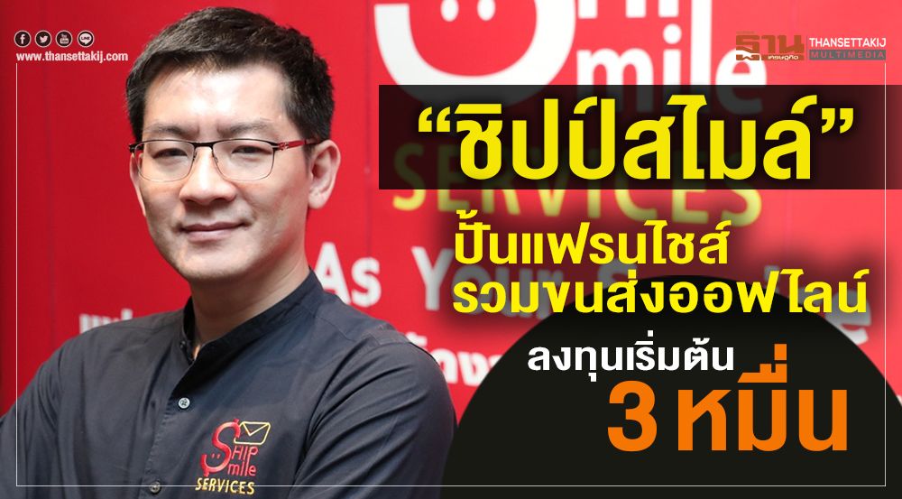 “ชิปป์สไมล์” ปั้นหน้าร้านออฟไลน์รวมบริการขนส่ง ลงทุนเริ่มต้น 3 หมื่น ตั้งเป้าสิ้นปีขยายกว่า 1,000 สาขา พร้อมเร่งผนึกพันธมิตรเสริมแกร่งธุรกิจ