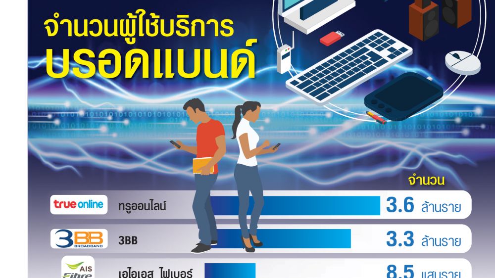 ปัจจุบันการแข่งขันอินเทอร์เน็ตความเร็วสูง การแข่งขันรุนแรง โดยเฉพาะผู้ประกอบการ 3 รายหลัก คือ ทรูออนไลน์ , 3BB และ เอไอเอส ไฟเบอร์ ต่างอัดแคมเปญอย่างดุเดือด มาดูว่าค่ายไหนมีจำนวนลูกค้าเท่าไหร่บ้าง “ฐานเศรษฐกิจ” ได้ทำอินโฟกราฟิกให้เห็นชัดๆ