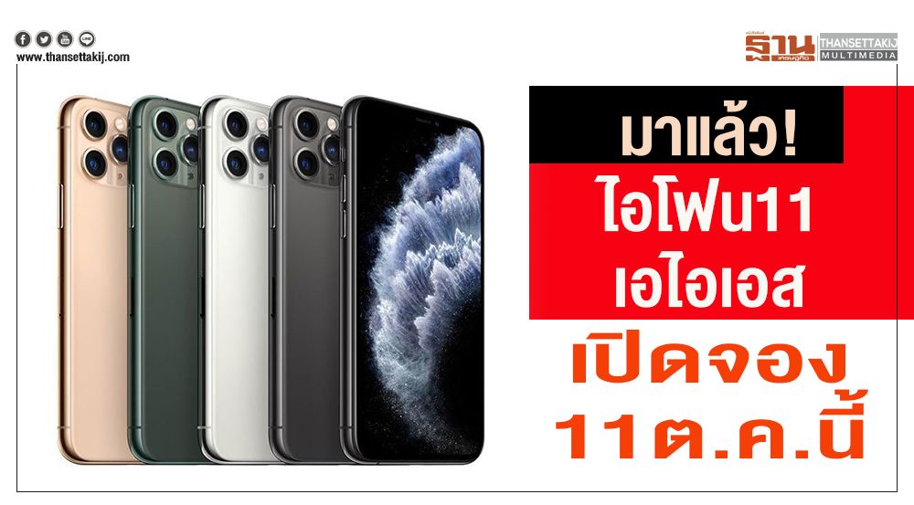 โดย iPhone 11 เริ่มที่ 24,900 บาท, iPhone 11 Pro เริ่มที่ 35,900 บาท และ iPhone 11 Pro Max เริ่มที่ 39,900 บาท