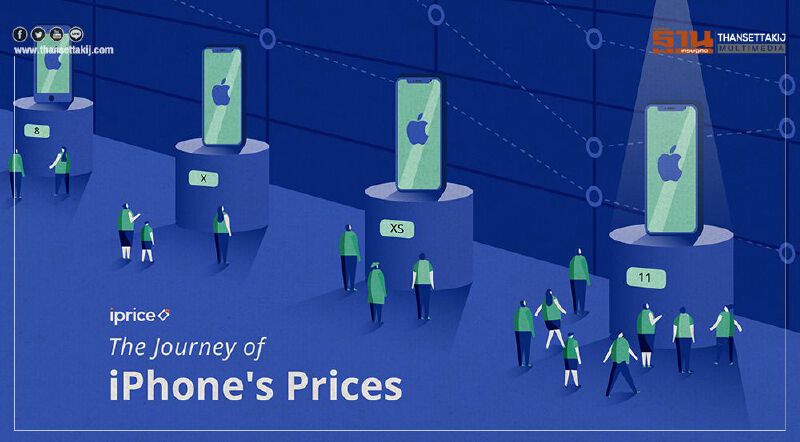 การศึกษาข้อมูล: iPrice สำรวจข้อมูลจาก iPhone รุ่น Flagship และมีหน่วยความจำที่ 256GB เท่านั้น เก็บข้อมูลราคาเปิดตัวจาก Apple.com/my และเก็บข้อมูลราคาลดลงของ iPhone ที่ 6 เดือน และ 12 เดือนจากฐานข้อมูลของ iPrice ที่มี iPhone วางจำหน่ายผ่านร้านค้าออนไลน์กว่าหนึ่งพันร้านค้า ราคาในอินโฟกราฟฟิกแปลงมาจากสกุลเงินมาเลเซียริงกิตเป็นไทยบาท