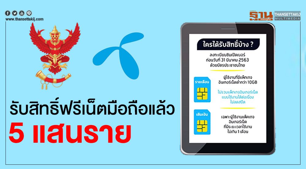นายประเทศ ตันกุรานันท์ รองประธานเจ้าหน้าที่บริหารกลุ่มเทคโนโลยี บริษัท โทเทิ่ล แอ็คเซ็ส คอมมูนิเคชั่น จำกัด (มหาชน) หรือดีแทค เปิดเผยว่า ตามที่ดีแทคและ กสทช. มอบเน็ตฟรีให้ลูกค้า 10GB ล่าสุดในครึ่งวันแรกมีประชาชนมาลงทะบียนแล้วราว 5 แสนราย ดีแทคยืนยันถึงความพร้อมจัดทัพดูแลโครงข่าย 24 ชั่วโมง รองรับโครงการมอบฟรีอินเทอร์เน็ตมากกว่า 10 GB ให้แก่ผู้ใช้งานในปัจจุบันเพื่อช่วยสนับสนุนให้ประชาชนทำงานผ่านอินเทอร์เน็ตอยู่บ้านตามมติที่ประชุม กสทช. สำหรับควบคุมพื้นที่การแพร่ระบาดของไวรัสโควิด-19 เผยการใช้งานพุ่งสูงแบบกระจายพื้นที่ตามแหล่งพักอาศัย ดีแทคจัดทีมงานวิเคราะห์การใช้งานมือถือเพื่อเสริมทัพโครงข่าย ชู Massive MIMO เพิ่มประสิทธิภาพ 3 เท่า พร้อมจัดทีมตั้งค่ายพักประจำสำนักงาน 24 ชั่วโมงสำหรับศูนย์ปฏิบัติการโครงข่าย (NOC) รองรับแผนฉุกเฉิน เพื่อให้ความมั่นใจในบริการทุกสถานการณ์อย่างต่อเนื่อง (อ่านเพิ่มเติม...ลงทะเบียนเน็ตฟรีครึ่งวันแรก1.8 ล้านเลขหมาย)