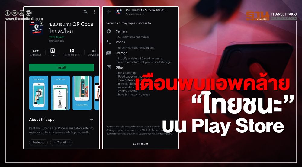 จากการตรวจสอบเบื้องต้น ตัวแอพพลิเคชันขอสิทธิ์ในการถ่ายภาพ โทรศัพท์ออกไปยังหมายเลขที่กำหนด อ่านหรือแก้ไขข้อมูลในโทรศัพท์ รวมถึงอ่านข้อความแจ้งเตือน ปัจจุบันไทยเซิร์ตอยู่ระหว่างการวิเคราะห์แอพพลิเคชันดังกล่าว โดยจะอัพเดตรายละเอียดเพิ่มเติมในภายหลัง