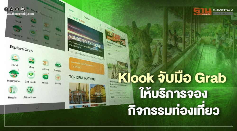 Klook แพลตฟอร์มการจองกิจกรรมและบริการด้านการท่องเที่ยวชั้นนำของโลก ร่วมมือกับ Grab ผู้นำซูเปอร์แอปแห่งภูมิภาคเอเชียตะวันออกเฉียงใต้ ได้เพิ่มฟังก์ชั่นใหม่บนแอปพลิเคชัน Grab นั่นคือ บริการจองกิจกรรมท่องเที่ยว (Attraction Tiles) ซึ่งจะทำให้ผู้ใช้บริการของ Grab สามารถเข้าไปค้นหาและจองกิจกรรมท่องเที่ยวที่ Klook เตรียมไว้ให้มากกว่า 100,000 แห่งได้อย่างสะดวกและง่ายดาย ผ่านแอปพลิเคชัน Grab