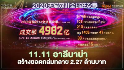 11.11อาลีบาบาสร้างยอดถล่มทลาย 2.27 ล้านล้านบาท