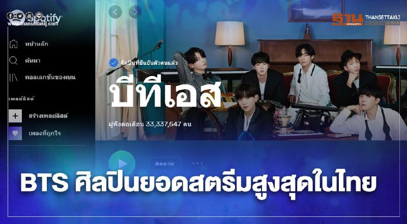 Spotify เผย BTS ศิลปินยอดสตรีมสูงสุดในไทย