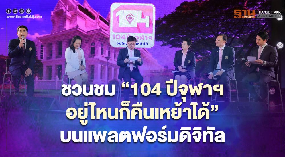 นายวิบูลย์ ฤกษ์ศิระทัย นายกสมาคมนิสิตเก่าจุฬาลงกรณ์มหาวิทยาลัย ในพระบรมราชูปถัมภ์ (สนจ.) กล่าวว่า ถือเป็นธรรมเนียมปฏิบัติของเราที่จะจัดงานคืนเหย้าในวันที่ 26 มีนาคมของทุกปี เพื่อให้ชาวจุฬาฯได้กลับมาพบปะหวนระลึกถึงวันชื่นคืนสุขเมื่อครั้งยังเยาว์วัย กลับมาดูความก้าวหน้าของมหาวิทยาลัย เพื่อร่วมกันเติมต่อ ขับเคลื่อน และสนับสนุนมหาวิทยาลัยอันเป็นที่รักยิ่งของเรา มาถึงปีที่แล้วเราจำเป็นต้องงดเว้นไป แต่เมื่อวิถีใหม่มาถึง งานคืนเหย้าของพวกเราในครั้งนี้จึงได้เปลี่ยนโฉมไปจากเดิมมากโดยใช้แนวคิดคืนเหย้าชาวจุฬาฯ 104 ปี วิถีใหม่ ภายใต้ชื่องาน “104 ปี จุฬาฯ อยู่ไหนก็คืนเหย้าได้”
