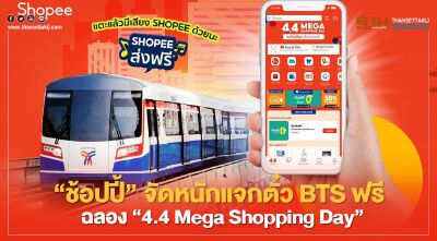 โดยแคมเปญ 4.4 Mega Shopping Day ถือเป็นแคมเปญที่มาสร้างอีกหนึ่งหน้าประวัติศาสตร์ของทั้ง 3 วงการยักษ์ใหญ่อย่าง อีคอมเมิร์ซ ระบบขนส่งมวลชน และสื่อโฆษณา เพื่อสร้างการจดจำ (Brand recognition) การมีส่วนร่วม (Engagement) และเข้าถึงผู้ใช้งานในวงกว้าง ตอกย้ำหัวใจหลักในการดำเนินธุรกิจด้วยความคิดสร้างสรรค์ โดยตั้งแต่วันที่ 22 มีนาคม ถึงวันที่ 4 เมษายน 2564 ผู้โดยสารที่เดินทางด้วยรถไฟฟ้าบีทีเอสคงจะได้ตื่นตาตื่นใจไปกับ “Shopee Gate Graphic Takeover” 16 สถานีทั่วกรุงเทพ อย่าง สถานีหมอชิต อนุสาวรีย์ชัยสมรภูมิ ศาลาแดง ชิดลม พร้อมพงษ์ อ่อนนุช เพลินจิต พญาไท อุดมสุข ช่องนนทรี อารีย์ เอกมัย ทองหล่อ สุรศักดิ์ นานา และพระโขนง ยกระดับความพิเศษ วันที่ 4 เมษายน 2564