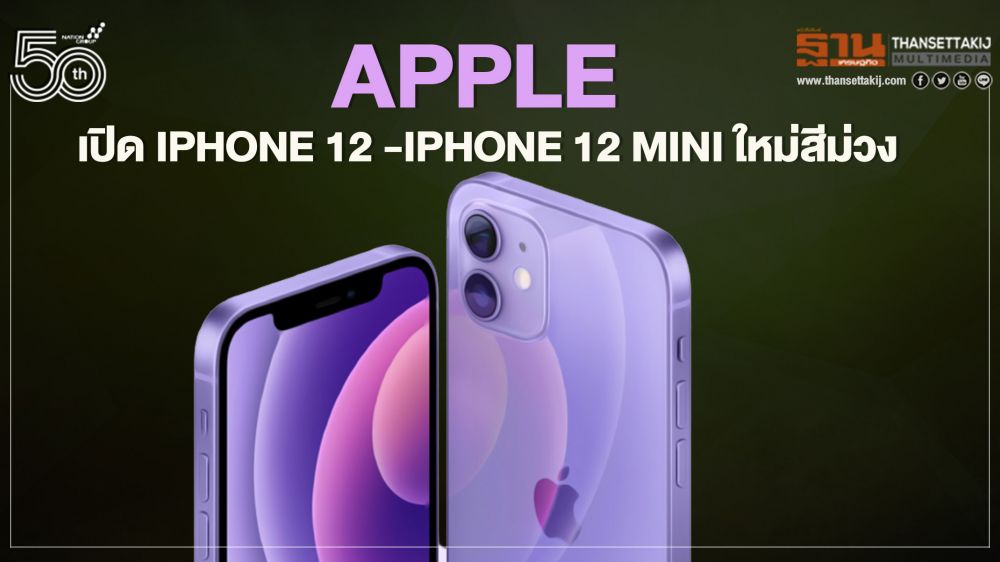 Apple เปิดตัว iPhone 12 และ iPhone 12 mini ใหม่ในสีม่วงสวยสะดุดตา ตัวเครื่องสีใหม่นี้ช่วยขับเน้นขอบอะลูมิเนียมแบบแบนของ iPhone 12 ให้โดดเด่น ซึ่งเข้ากับสีกระจกด้านหลังที่ได้รับการตัดแต่งอย่างแม่นยำได้ลงตัว ทั้ง 2 รุ่นมาพร้อมกับระบบกล้องคู่ที่มอบคุณสมบัติการถ่ายภาพเชิงคำนวณอันทรงพลังและคุณภาพวิดีโอที่สูงที่สุดในสมาร์ทโฟน จอภาพ Super Retina XDR ที่กว้างแบบขอบจรดขอบพร้อมด้วย OLED ที่จะมอบประสบการณ์การรับชมที่เต็มอิ่มเต็มตายิ่งขึ้น ส่วนด้านหน้าแบบ Ceramic Shield มอบความทนทานที่เพิ่มขึ้นแบบก้าวกระโดดแก่ iPhone แบบที่ไม่เคยมีมาก่อน A14 Bionic ที่ออกแบบโดย Apple เป็นชิปที่เร็วที่สุดในสมาร์ทโฟนซึ่งมอบพลังให้กับทุกการใช้งานบน iPhone 12 พร้อมกับจัดการให้แบตเตอรี่ใช้งานได้ยาวนานขึ้น