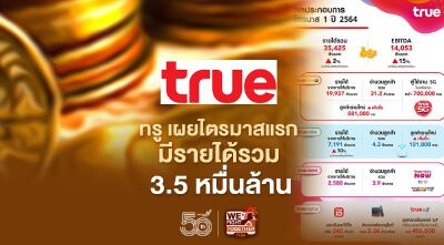 ทรู เผยผลประกอบการไตรมาสแรกมีรายได้รวม 3.5 หมื่นล้าน