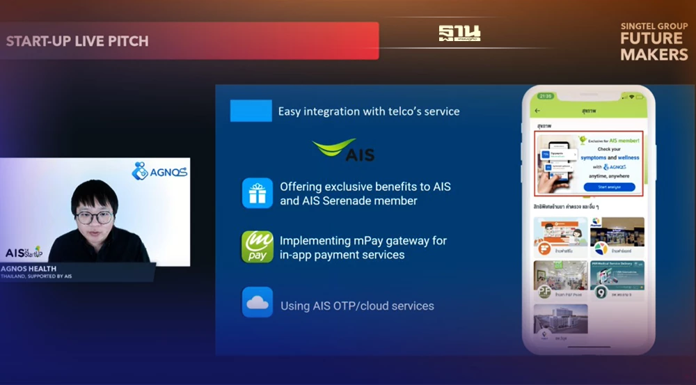 ดร. ปพนวิช ชัยวัฒโนดม CEO Agnos health กล่าวว่า “เรารู้สึกยินดีเป็นอย่างยิ่งที่ได้รับคัดเลือกในครั้งนี้ โดยที่ผ่านมาของ Agnos เกิดขึ้นจากการเห็นถึงปัญหาปริมาณแพทย์ที่ไม่เพียงพอต่อจำนวนประชากร โดยเฉพาะเมื่อเกิดสถานการณ์แพร่ระบาดของโควิด ปัญหาตรงนี้ก็ยิ่งชัดเจนขึ้น นอกจากนี้ประชาชนเองก็อาจจะยังขาดข้อมูล องค์ความรู้ที่เชื่อถือได้ในการดูแลสุขภาพเบื้องต้นได้ด้วยตัวเอง เราจึงนำเทคโนโลยีปัญญาประดิษฐ์ (Artificial Intelligence) เข้ามาลดช่องว่างตรงนี้ โดยให้ประชาชนสามารถเช็คอาการป่วยเบื้องต้นได้ด้วยตนเอง ง่ายๆผ่านมือถือ เพื่อช่วยให้ทุกคนเข้าใจและ ดูแลสุขภาพได้ง่าย สะดวก ประหยัดขึ้น รวมถึงไม่ไปเพิ่มปริมาณในสถานพยาบาลโดยไม่จำเป็น”