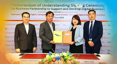 วันนี้ (27 มิถุนายน 2565) นายสมยศ ธนพิรุณธร รองกรรมการผู้จัดการใหญ่ สายงานการตลาด บริษัท โทรคมนาคมแห่งชาติ จำกัด (มหาชน) หรือ NT เปิดเผยว่า NT ได้ลงนามความร่วมมือกับ อาลีบาบากรุ๊ป ว่าด้วยการเป็นพันธมิตรทางธุรกิจเพื่อสนับสนุนและพัฒนาธุรกิจดิจิทัล โดยจะนำศักยภาพด้านการให้บริการเทคโนโลยีดิจิทัลของสองหน่วยงานมาพัฒนานวัตกรรมด้านการสื่อสารพร้อมยกระดับการให้บริการ และรองรับการเติบโตของลูกค้าทุกกลุ่มเป้าหมาย