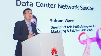 นายหวัง อี้ตง ผู้อำนวยการฝ่ายการตลาดและการขายโซลูชัน ICT ประจำภูมิภาคเอเชียแปซิฟิกหัวเว่ย เปิดเผยผ่านปาฐกถาพิเศษว่า หัวเว่ยได้วางโครงสร้างพื้นฐานเครือข่ายศูนย์ข้อมูลให้องค์กรในหลากหลายอุตสาหกรรมทั่วทั้งภูมิภาคเอเชียแปซิฟิก เพื่อช่วยเพิ่มประสิทธิภาพ ความเสถียรและความปลอดภัยขั้นสูง ซึ่งจะช่วยเสริมศักยภาพให้ลูกค้าสามารถขับเคลื่อนนวัตกรรมทางธุรกิจ
