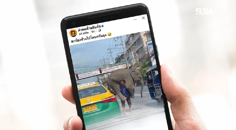 สกมช. เช็คแล้ว คลิปชายแบกช้าง สร้างจาก AI เตือนให้ชัวร์ก่อนแชร์
