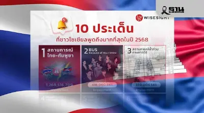 - Wisesight เผย 10 ประเด็นร้อนบนโลกโซเชียลปี 2568 โดยประเด็นความสัมพันธ์ไทย-กัมพูชามีเอ็นเกจเมนต์สูงสุดกว่า 1.2 พันล้านครั้ง
