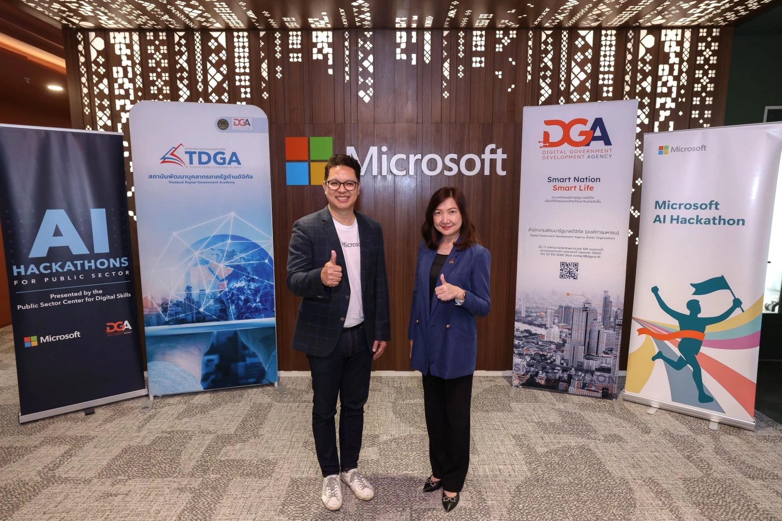 นายธนวัฒน์ สุธรรมพันธุ์ กรรมการผู้จัดการใหญ่ บริษัท ไมโครซอฟท์ (ประเทศไทย) จำกัด กล่าวว่า “การเสริมสร้างทักษะ AI ให้กับบุคลากรภาครัฐ ภายใต้โครงการ Tech for Gov 2025: NextGen Gov AI Training Program สอดคล้องกับพันธกิจของไมโครซอฟท์ในการยกระดับทักษะ AI ให้กับคนไทย 1 ล้านคนผ่านโครงการ THAI Academy เรารู้สึกตื่นเต้นที่มีบุคลากรภาครัฐจากทั่วประเทศจำนวนมากเข้าร่วมในโครงการนี้ และได้เห็นถึงพลังและความมุ่งมั่นของผู้เข้าร่วมอบรมทุกท่าน ซึ่งบุคลากรเหล่านี้จะเป็นผู้นำการเปลี่ยนแปลงที่นำ AI ไปประยุกต์ใช้และยกระดับการดำเนินงานเพื่อเสริมประสิทธิภาพให้กับหน่วยงานภาครัฐต่อไป โครงการนี้จะเกิดขึ้นไม่ได้เลยหากขาดความร่วมมือที่แน่นแฟ้นจากทุกฝ่าย ขอขอบคุณทาง DGA ที่ทำให้เกิดของโครงการนี้ และผู้เข้าร่วมโครงการทุกท่าน รวมถึงพันธมิตรของไมโครซอฟท์ และขอแสดงความยินดีกับผู้ชนะการแข่งขัน Hackathon ทุกทีม ไมโครซอฟท์ให้คำมั่นว่าจะเดินหน้าสนับสนุนการนำ AI มาสร้างสรรค์สิ่งดีๆ ให้กับประเทศไทยของเราอย่างต่อเนื่อง”