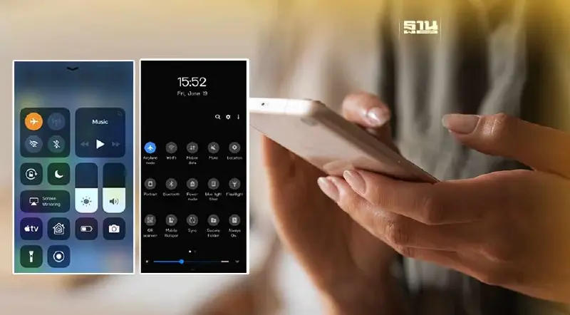 เช่นเดียวกับในไอโฟน (iPhone) มองหาสัญลักษณ์รูปเครื่องบิน โดยการใช้นิ้วลากหน้าจอจากด้านบนสุดลงมาเป็นเปิดแผงควบคุม